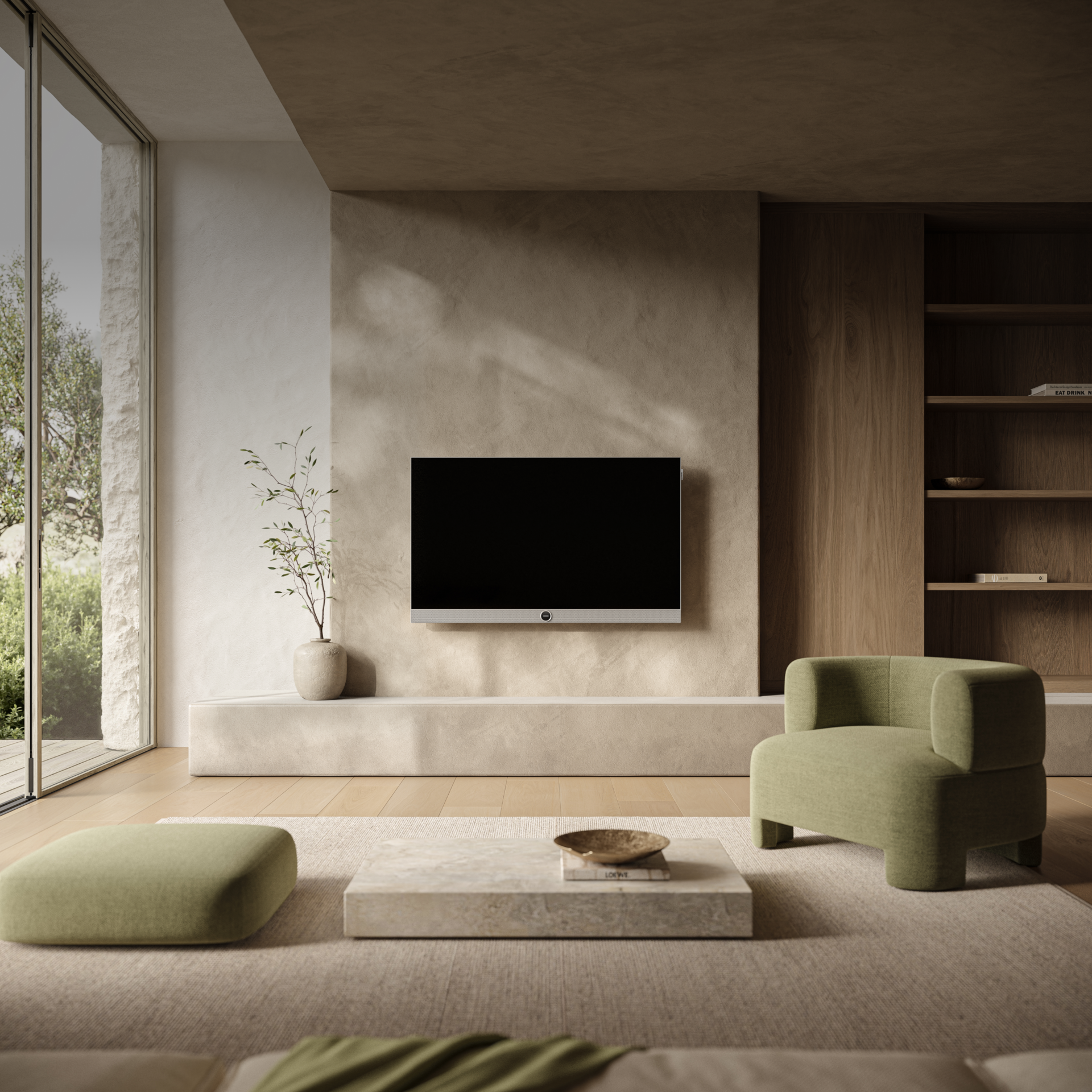 Der Fernseher überzeugt nicht nur technisch, sondern auch optisch. Sein zeitloses und hochwertiges Design mit sorgfältig ausgewählten Materialien sorgt dafür, dass er sich harmonisch in verschiedene Wohnumgebungen integriert.